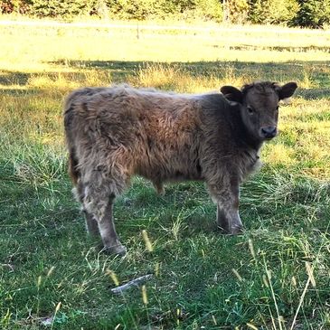 5 yr old AHCA (#61455) cow comes with her 2025 steer calf by her side born 7/18/2025 (Sired by #62367- calf is non papered at the moment but could be). Comes EXPOSED to AHCA bull # 67475. Vet preg checked her today (11/8/25) and is possibly 30 days pregnant. Too early to confirm so selling as exposed. Excellent mama- Has had 3 calves (black, dun, red). She is a later calver than the rest of our fold so posting. Respectful of fences and people, not aggressive, but prefers to be left alone. Not a pet or show animal. Located in Coggon Iowa. $10,000 cow and calf